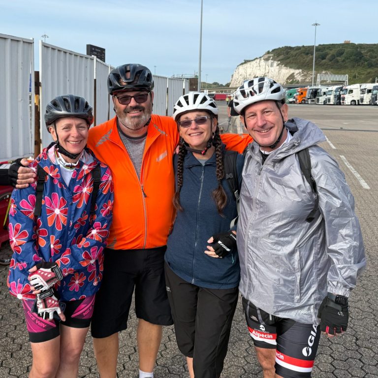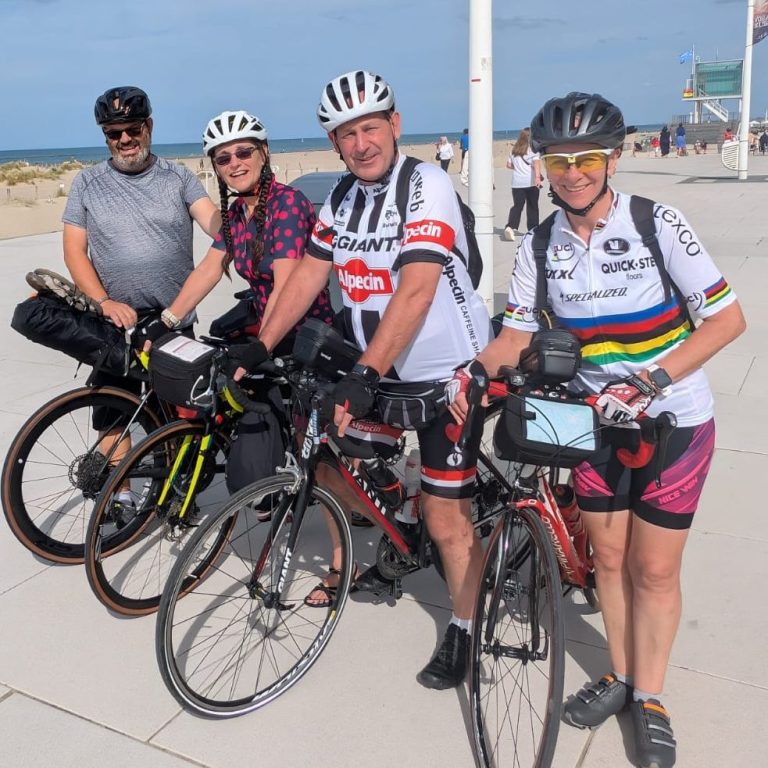 The journey began early with a hearty breakfast and a freewheeling ride down to Maidstone East station. Spirits were high as Shelley, Andrea, Gareth, and I rolled our fully loaded bikes onto the platform, torpedo tubes strapped firmly to the back, bulging with everything we’d need for a week of cycling through Northern France and Belgium.