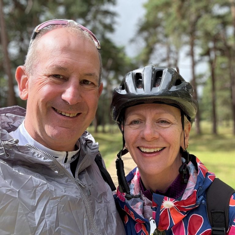 Not the best of starts: Andrea got a puncture within a mile, but we were soon back on track after a speedy tube change, Gareth can certainly change a tyre better than I can.