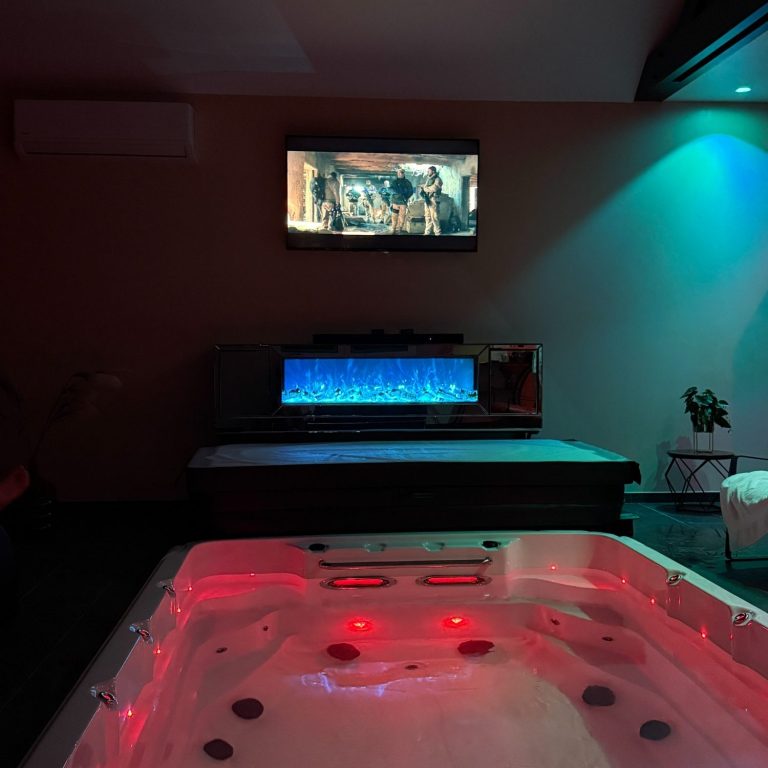 Later that evening we tested the villa spa properly: a swim-sized jacuzzi, Only Fools & Horses on TV, takeaway food (after a comically slow delivery), and plenty of laughter. Bliss.
