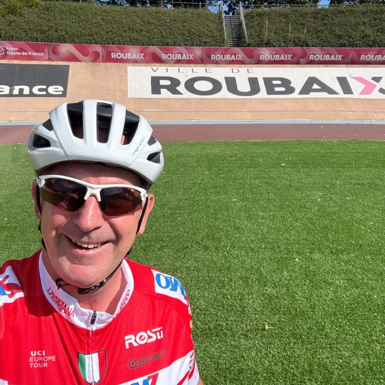 Grass tufts may have crept through the concrete, but it didn’t matter: we were circling the same tracks as Merckx, Boonen, Hinault and Van Petegem. I managed a few laps above the red line, grinning ear to ear, imagining the cheers of Paris Roubaix crowds.